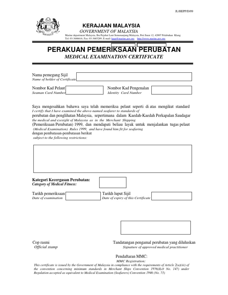 Related : Borang Medical Check Up Kerajaan - Pemeriksaan doktor untuk perlantikan ke perkhidmatan kerajaan (perintah am 23(a) bab 'a' 1973) calon bagi jawatan hendaklah mengisi bahagian 'a' di bawah ini dan menyerahkannya kepada pegawai..