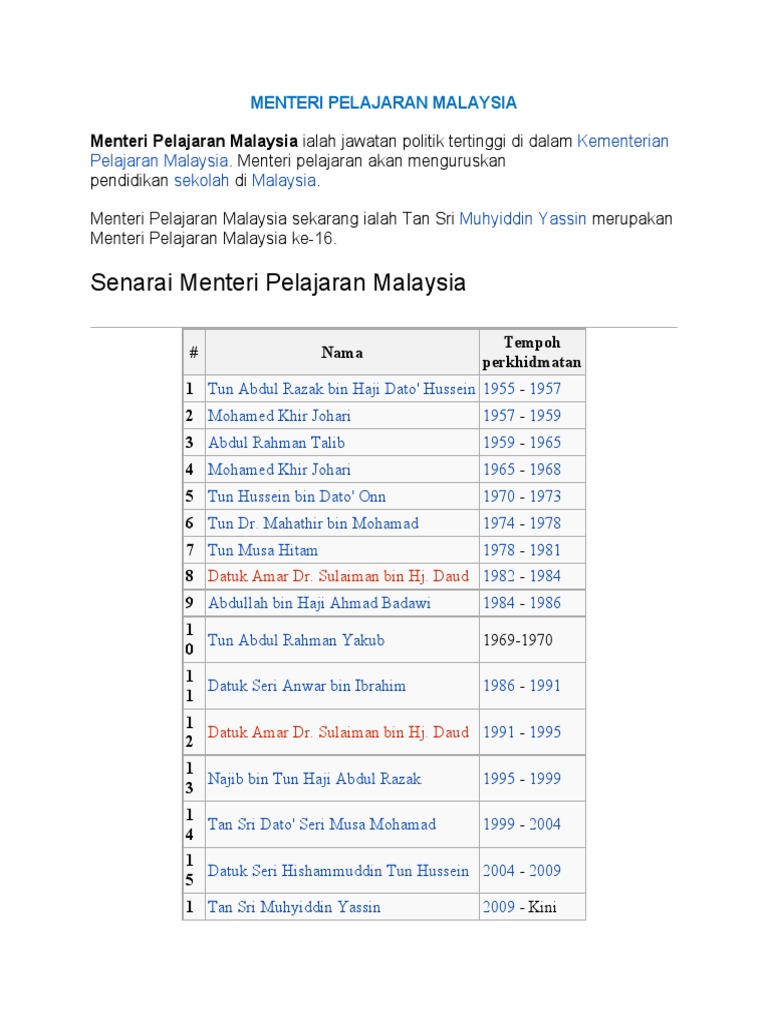 Related : Senarai Menteri Di Malaysia - Senarai menteri kabinet malaysia baru seperti diumumkan oleh perdana menteri, tan sri muhyiddin yassin pada 9 mac 2020..