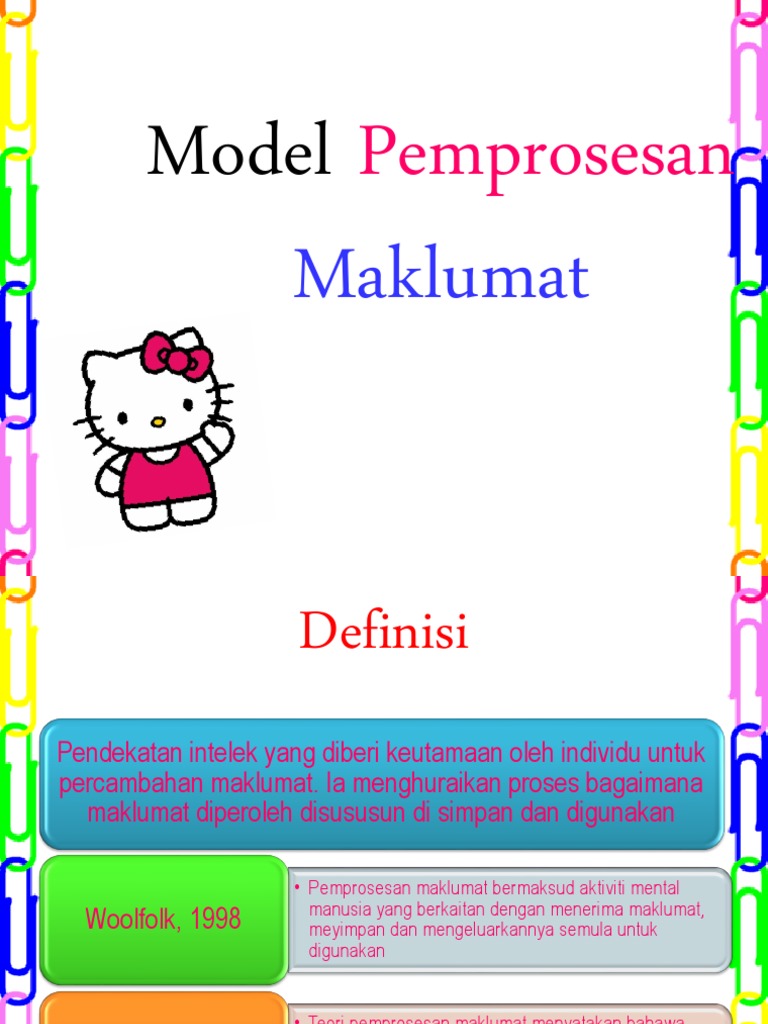 Edu3103 Model Pemprosesan Maklumat Pptx Powerpoint from reader016.cupdf.com Berpindah ke kiri pada saat kaki kiri mundur. Maklumat ini akan ditafsir dalam stor ingatan, kemudian dihantar kepada stor ingatan jangka panjang dan akhirnya kepada penggerak tindak balas melalui sistem saraf. Teori pemrosesan informasi merupakan salah satu bagian dari teori belajar sibernetik. Penelitian sehingga penulis dapat memperkaya teori yang digunakan dalam mengkaji penelitian yang dilakukan. David mcclelland mengembangkan suatu teori motivasi. Tugas makalah pemrosesan (teknik pembuatan) dan aplikasi polimer. Dalam tinjauan psikologi kognitif belajar diartikan sebagai the process of acquiring knowledge. Dari kajian teori singkat mengenai pentingnya pembangunan infrastruktur jalan di atas, dapat disimpulkan bahwa ketersediaan infrastruktur jalan yang layak dapat berpengaruh besar terhadap perubahan pertumbuhan kehidupan ekonomi dan sosial masyarakat suatu daerah.